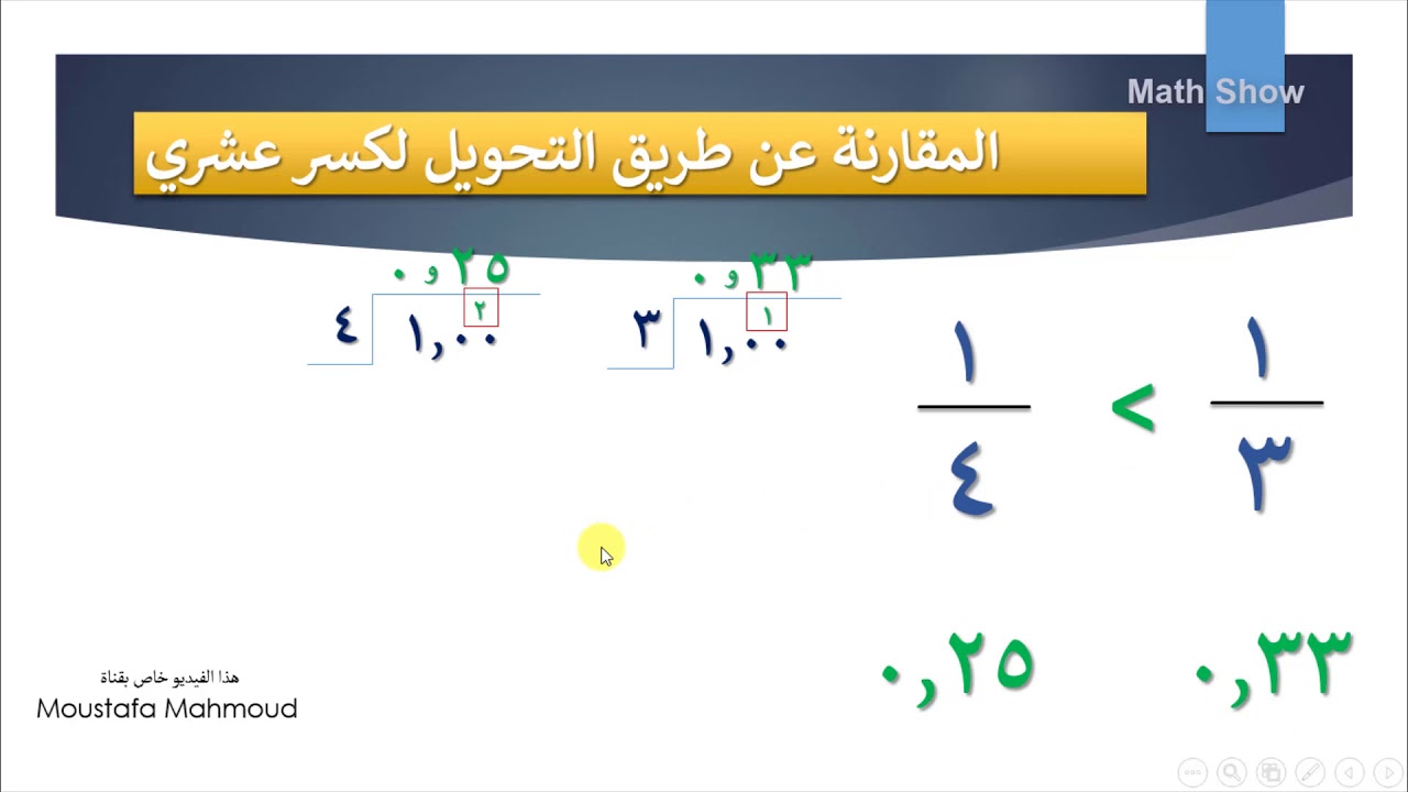 Math Show مقارنة الكسور الصف السابع Youtube