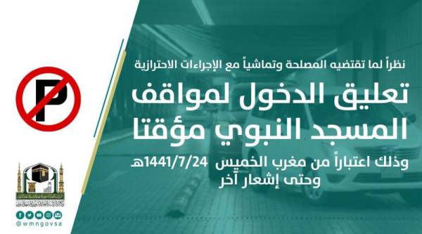 جريدة الرياض تعليق الدخول لمواقف المسجد النبوي ضمن التدابير الوقائية من كورونا